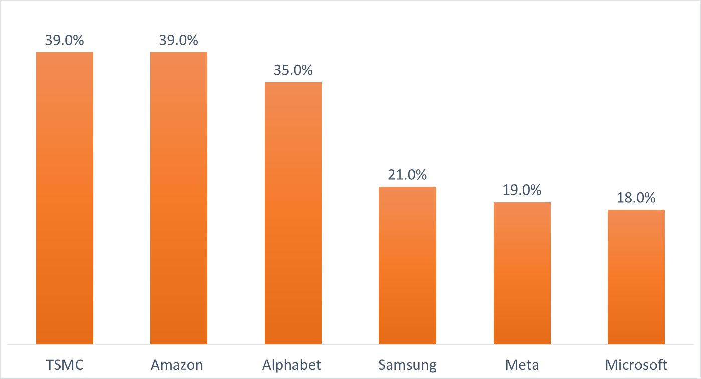 Net profit growth of leading technology companies that announced financial results in October 2025.