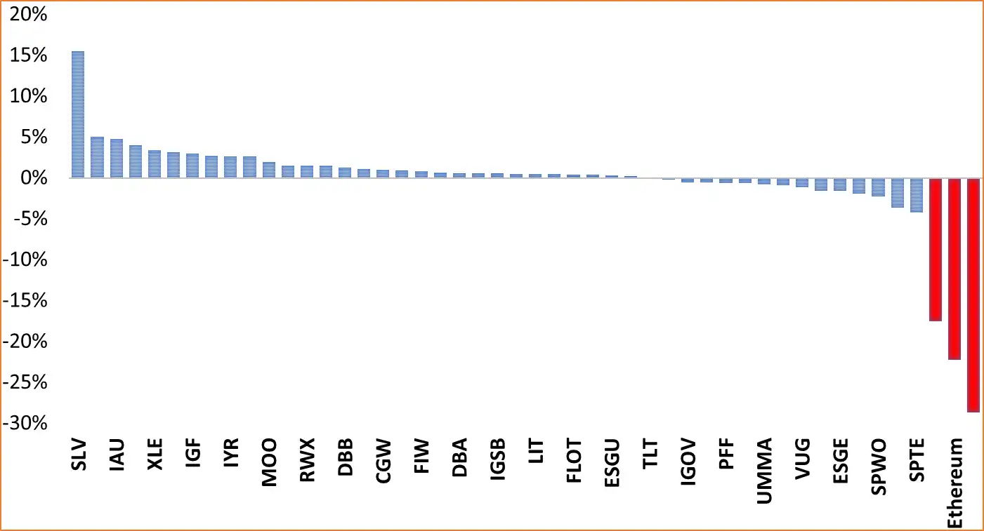 - Against steep cryptocurrency losses (up to 28.70%), the majority of the 45 ETFs in our disciplined portfolios posted positive returns, with the worst loss contained to just 4.27%.