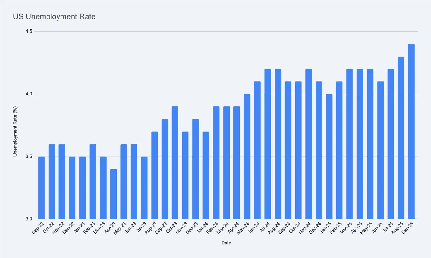 US Monthly Unemployment Rate Data from September 2022 to September 2025