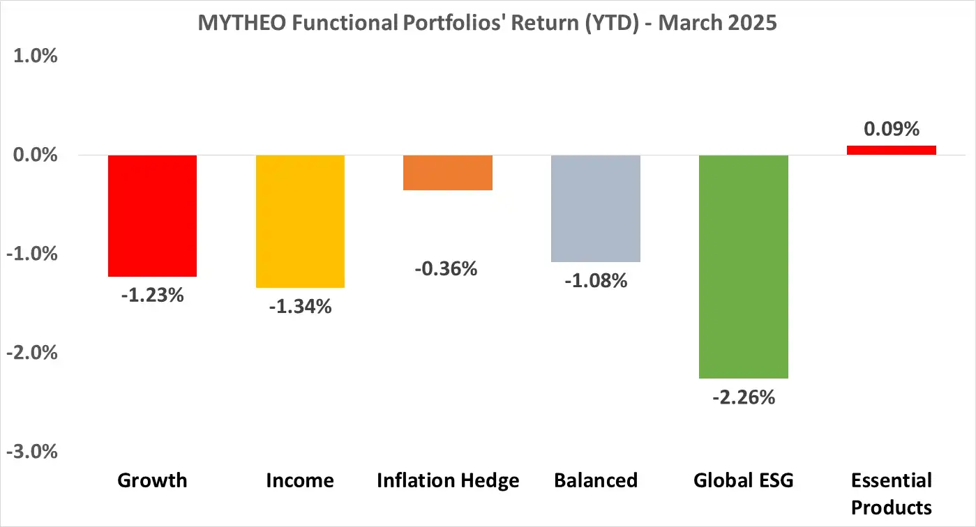 In this monthly report, we will assess the performance of MYTHEO’s portfolios in light of the financial market developments in March 2025.