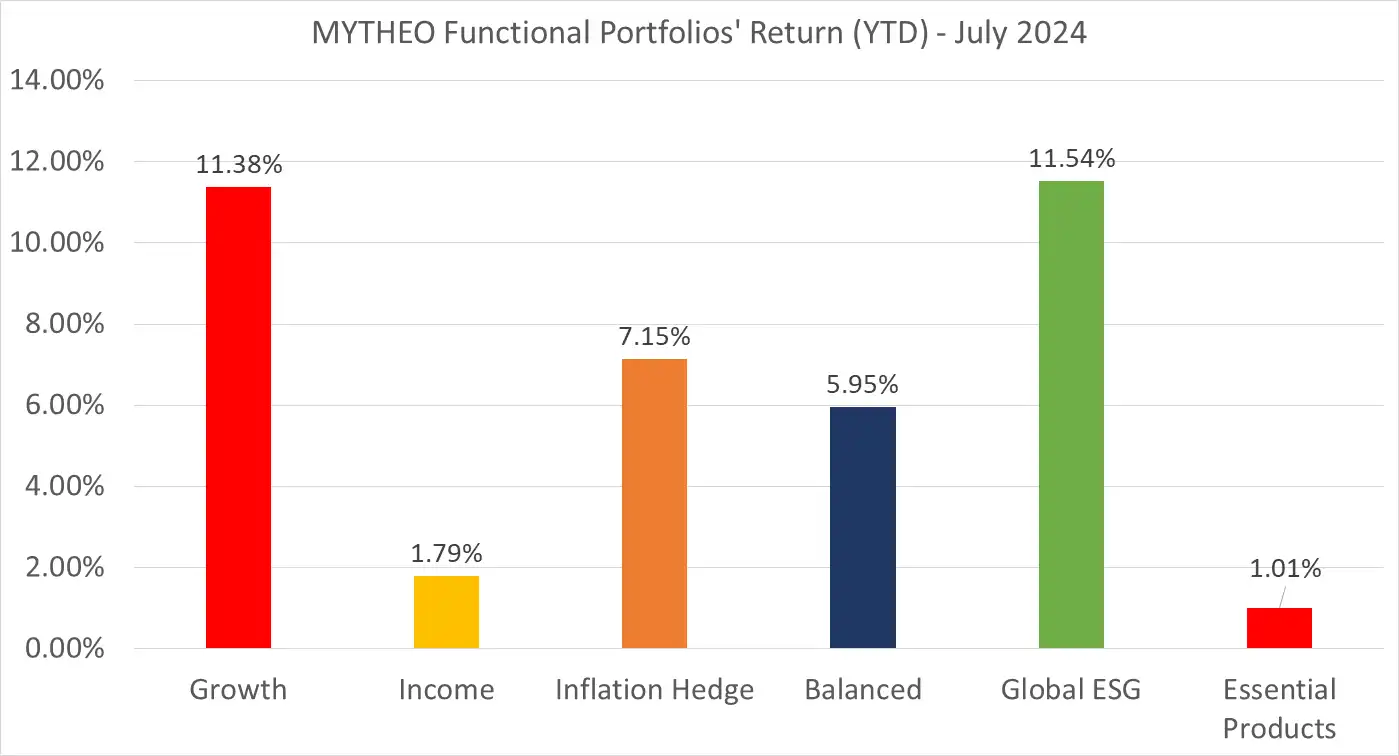 In this monthly report, we will assess the performance of MYTHEO’s portfolios in light of the financial market developments in July 2024.