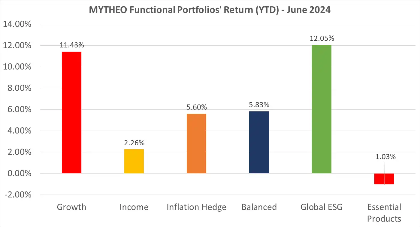In this monthly report, we will assess the performance of MYTHEO’s portfolios in light of the financial market developments in June 2024.