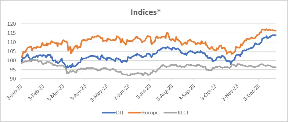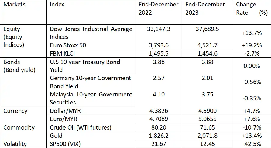 Stock markets rose sharply in the U.S., Europe and Japan, while interest rates were almost flat in the US but fell in Europe and Malaysia. Meanwhile, oil prices fell but gold prices rose.