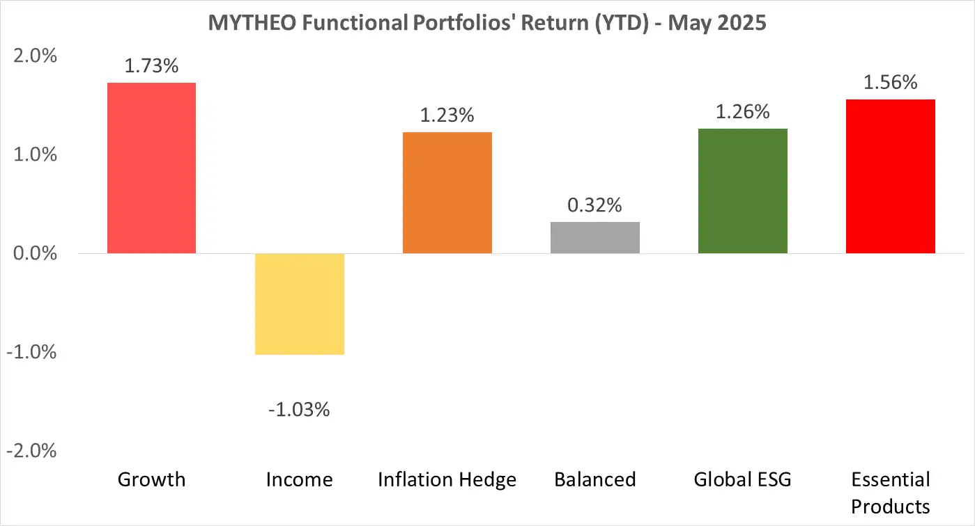 In this monthly report, we will assess the performance of MYTHEO’s portfolios in light of the financial market developments in May 2025.