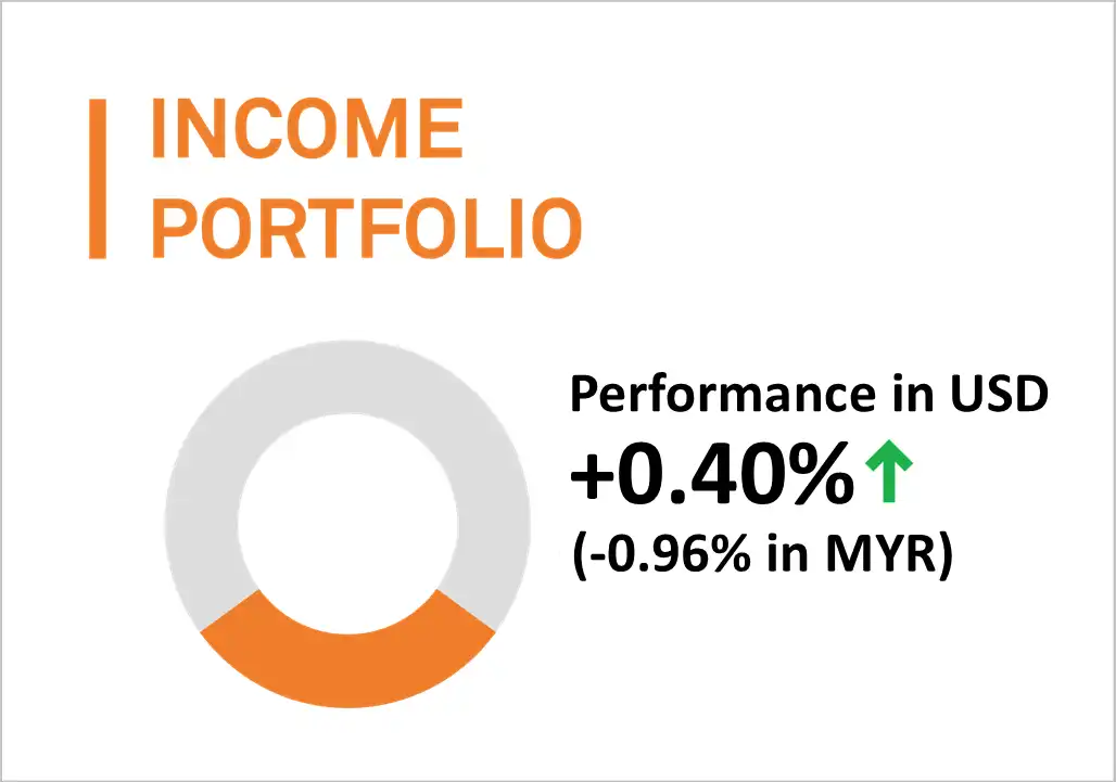 In May 2025, MYTHEO's Income Portfolio rose by 0.40% (a decrease of 0.96% in MYR).