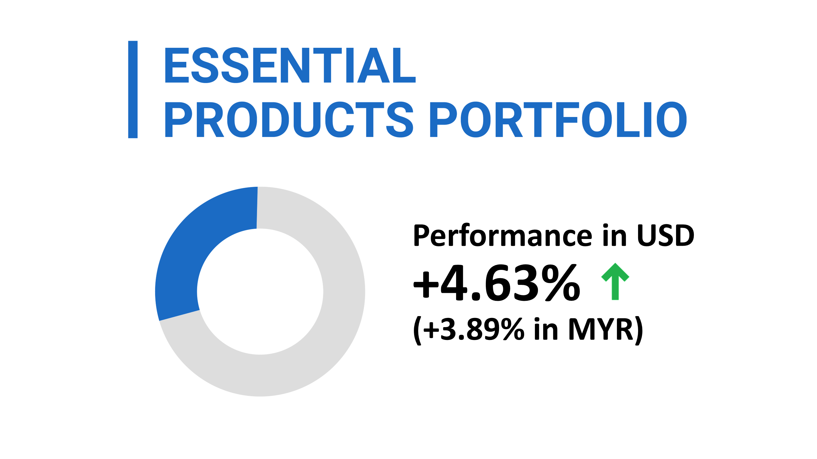 MYTHEO’s Essential Products portfolio is up by 4.63% (+3.89% in MYR) in November 2023.