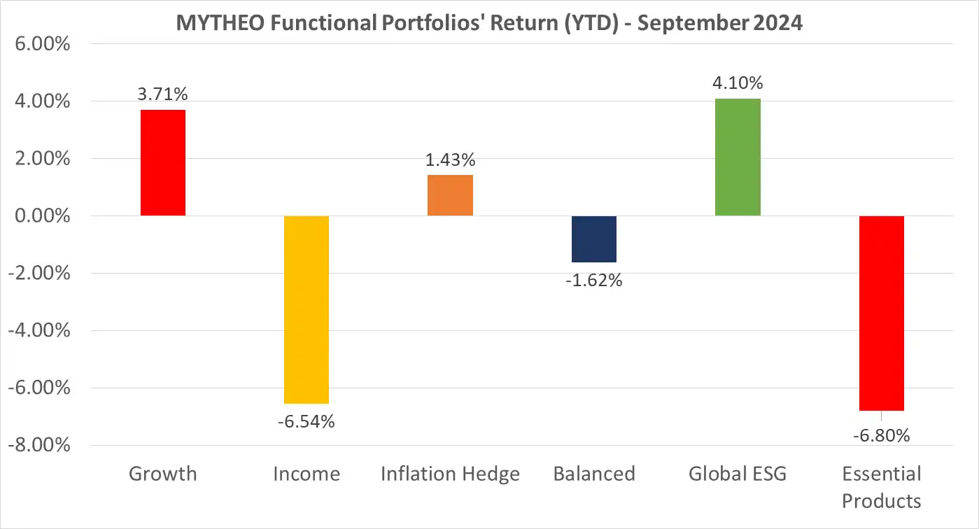 In this monthly report, we will assess the performance of MYTHEO’s portfolios in light of the financial market developments in September 2024.